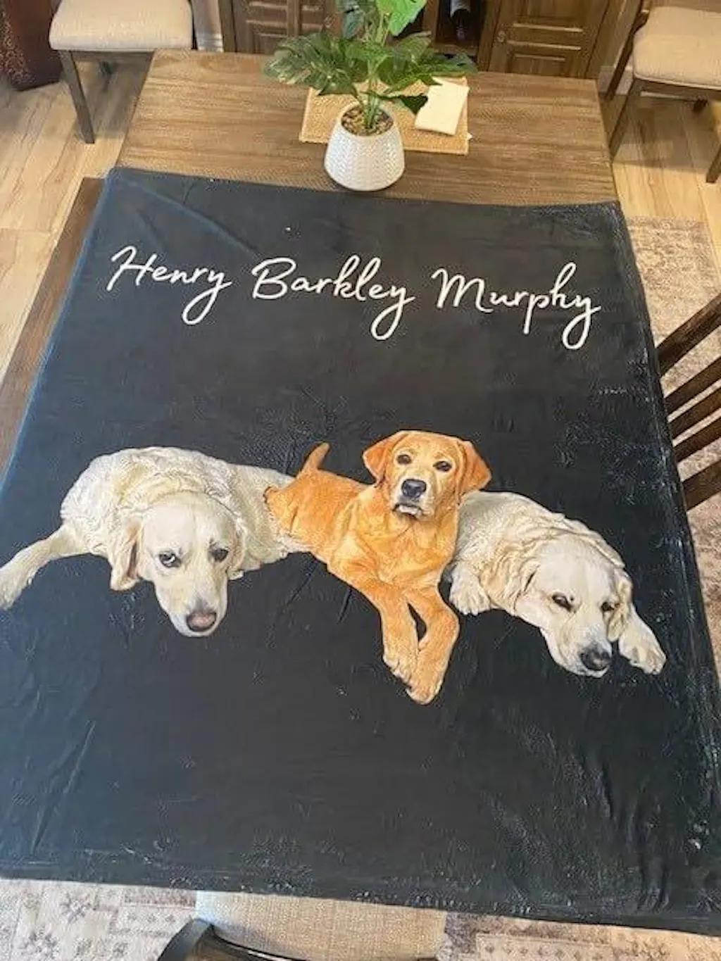 The preview you see on the website is just a rough mockup. Our design team will professionally edit your photo — cleaning up the background, correcting colors, and placing your pet perfectly on the blanket.